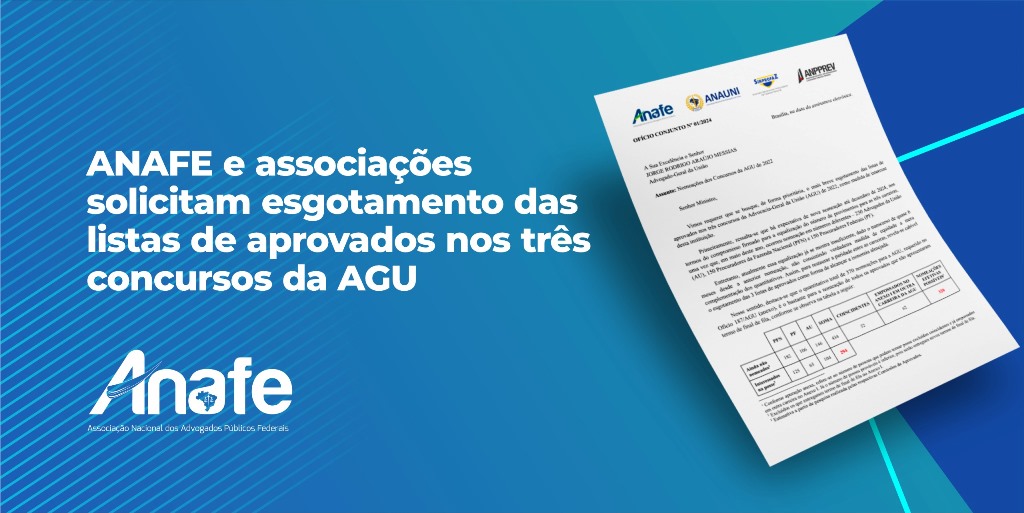 A ANAFE, juntamente com a ANAUNI, Sinprofaz e Anpprev, encaminhou um ofício ao Advogado-Geral da União, Jorge Messias, solicitando, de forma prioritária, o esgotamento das listas de aprovados nos três concursos da Advocacia-Geral da União (AGU) de 2022, como medida de interesse institucional.