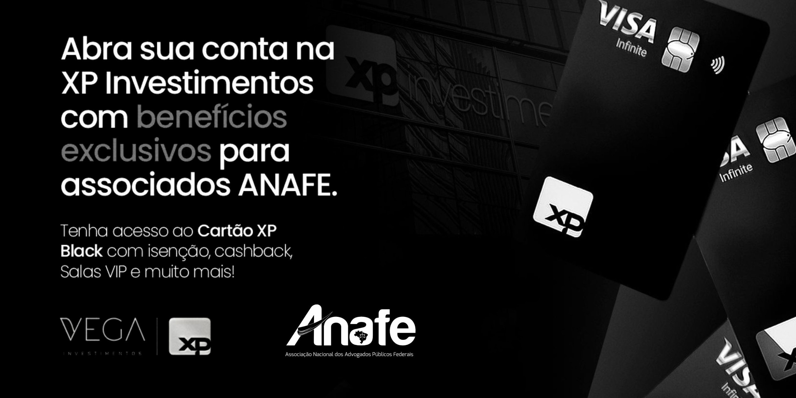 A Associação Nacional dos Advogados Públicos Federais (ANAFE) firmou um novo benefício com a VEGA XP Investimentos, com foco em oferecer aos associados acesso facilitado a soluções financeiras, planejamento patrimonial e vantagens exclusivas, por meio de atendimento especializado e condições diferenciadas.