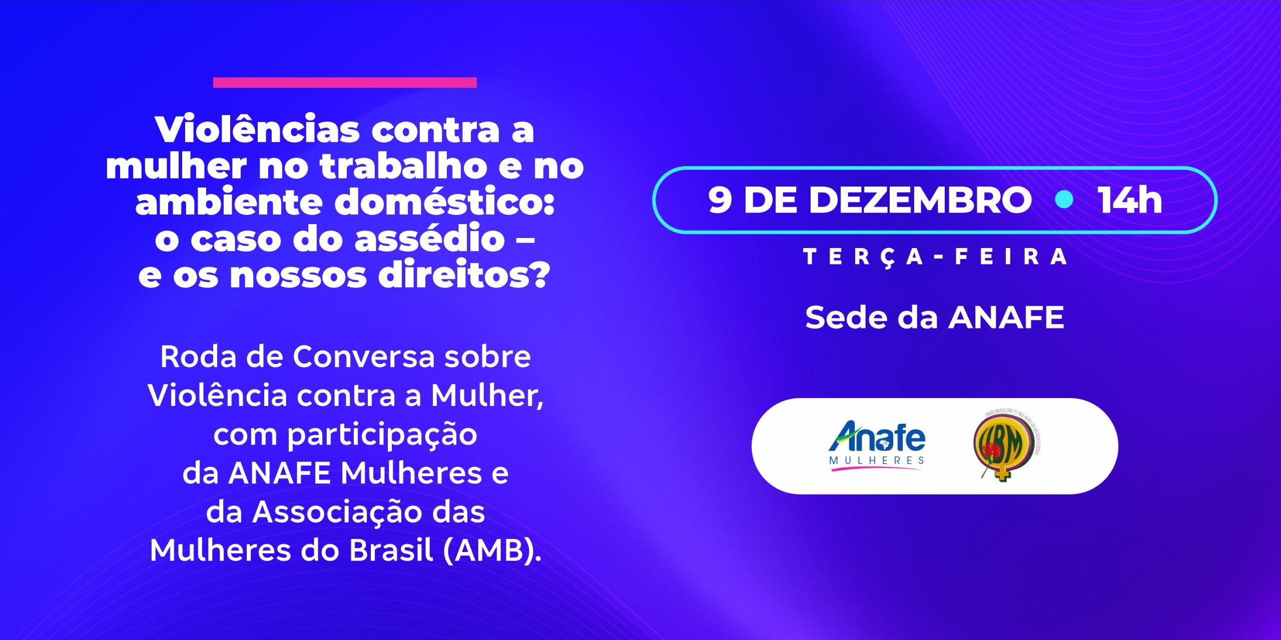 A atividade contará com a participação da ANAFE Mulheres e da Associação das Mulheres do Brasil (AMB), que trarão reflexões sobre direitos, prevenção e formas de enfrentamento ao assédio em suas diferentes manifestações.