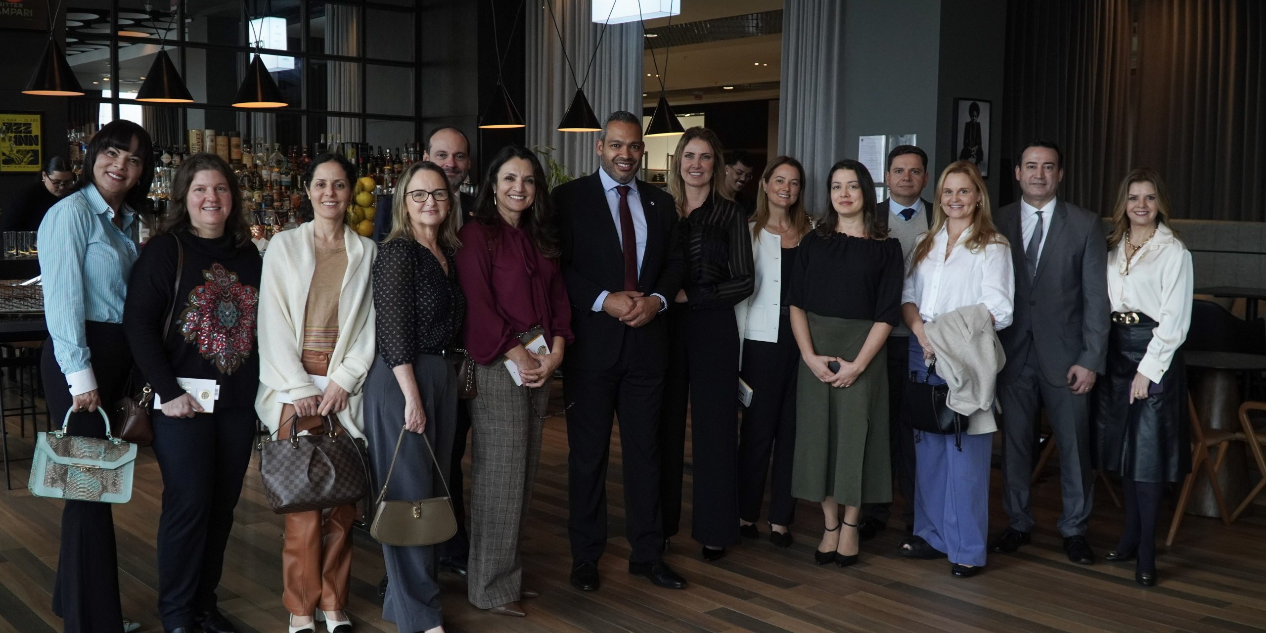 Após o Café Parlamentar, o Presidente da ANAFE, Vitor Pinto Chaves, e o Diretor Parlamentar, Brivaldo Santos, participaram de um almoço institucional com o Presidente da OAB/SC, Juliano Mandeli, e a Vice-Presidente da Seccional, Gisele Kravchychyn.