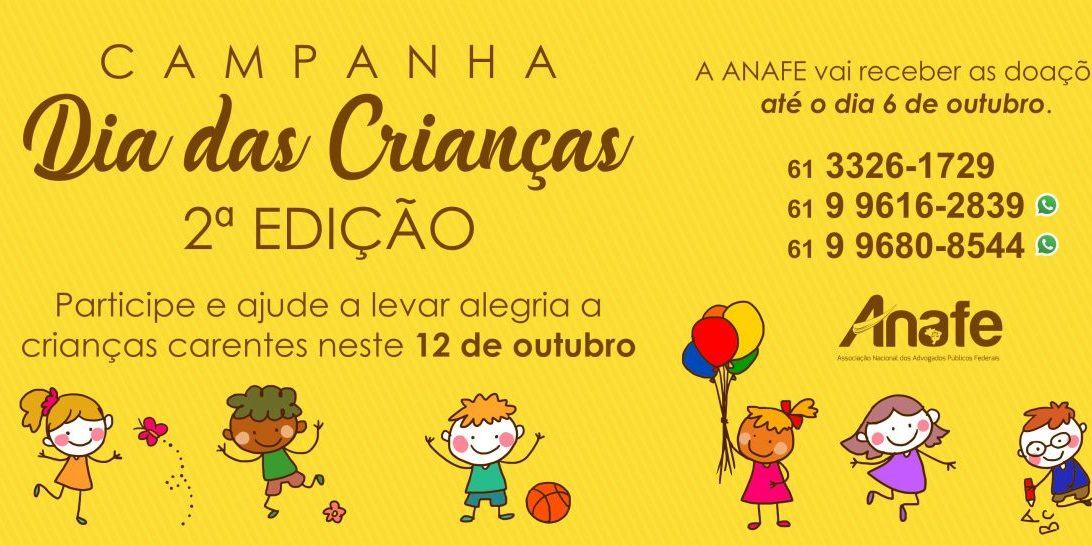 Quem tiver interesse em contribuir com a ação, poderá fazer as doações pessoalmente na sede ANAFE (SHIS QL 24, conjunto 3, casa 1 – Lago Sul/DF) até o dia 6 de outubro ou promover uma campanha de arrecadação coletiva em sua unidade. Nesse último caso, o associado deve entrar em contato com a Associação pelo número (61) 3326-1729 para combinar a entrega.