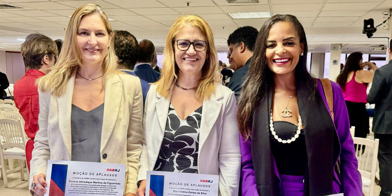A homenagem, concedida pela Ordem dos Advogados do Brasil Seccional Rio de Janeiro, reconhece a destacada atuação profissional das advogadas e sua relevante contribuição para o fortalecimento da Justiça e da cidadania.