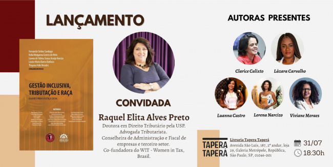 Participe do lançamento do livro “Gestão Inclusiva, Tributação e Raça” com autoras associadas à ANAFE nesta quinta-feira (31), em São Paulo