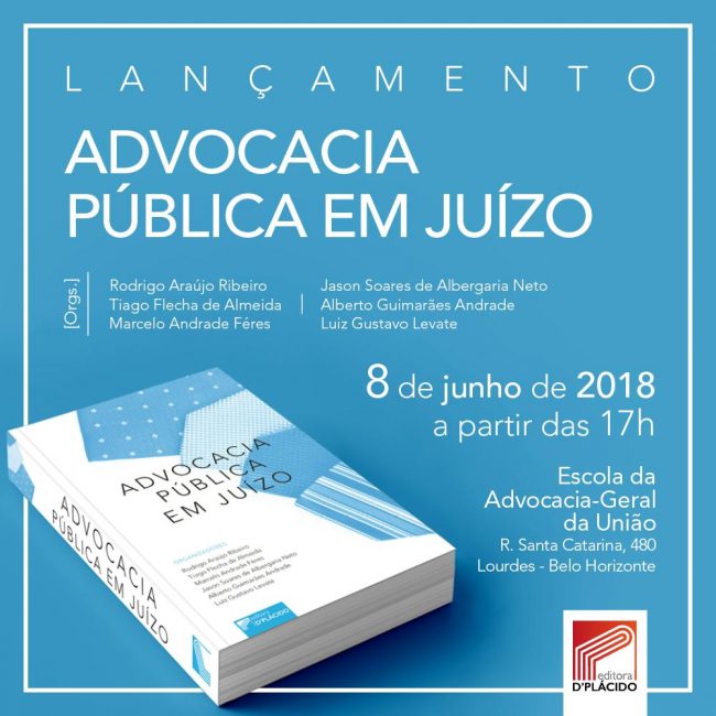 Organizado por renomados Advogados Públicos, o livro “Advocacia Pública em Juízo”, publicado pela editora D’Plácido, será lançado na próxima sexta-feira (8), a partir das 17h, na Escola da Advocacia-Geral da União em Belo Horizonte. Na apresentação da obra, o Procurador-Geral do Município de Belo Horizonte, Tomáz de Aquino Resende, afirma que o livro revela a importância…