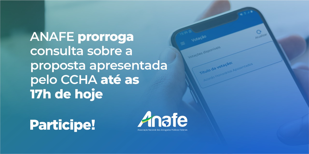 A ANAFE prorroga o prazo para ampliar a participação dos Advogados Públicos Federais na consulta sobre a proposta de acordo relativo aos aposentados apresentada pelo Conselho Curador dos Honorários Advocatícios (CCHA), formalizada no último mês.