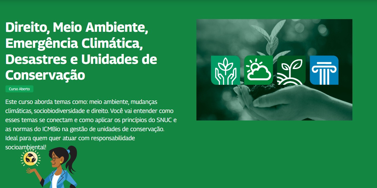 Com abordagem jurídica e interdisciplinar, o curso inédito aborda temas centrais da agenda ambiental contemporânea, como Mudanças Climáticas e Justiça Ambiental, Desastres e impactos em Unidades de Conservação, Sistema Nacional de Unidades de Conservação (SNUC) e o papel do ICMBio, além de tópicos sobre Gestão Ambiental, Poder de Polícia e Regularização Fundiária em Unidades de Conservação.