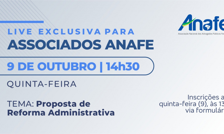 Na próxima quinta-feira, 9 de outubro, às 14h30, dirigentes da ANAFE promoverão uma live exclusiva…