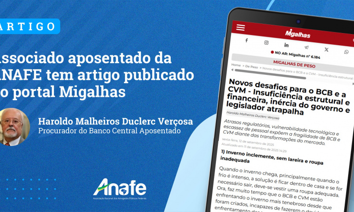 O Procurador do Banco Central aposentado e associado à ANAFE, Haroldo Malheiros Duclerc Verçosa, publicou…