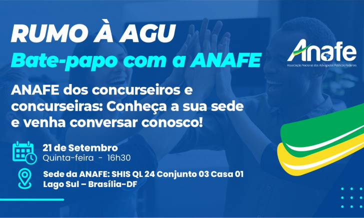 RUMO À AGU: Bate-papo na sede da ANAFE para Concurseiros e Concurseiras!