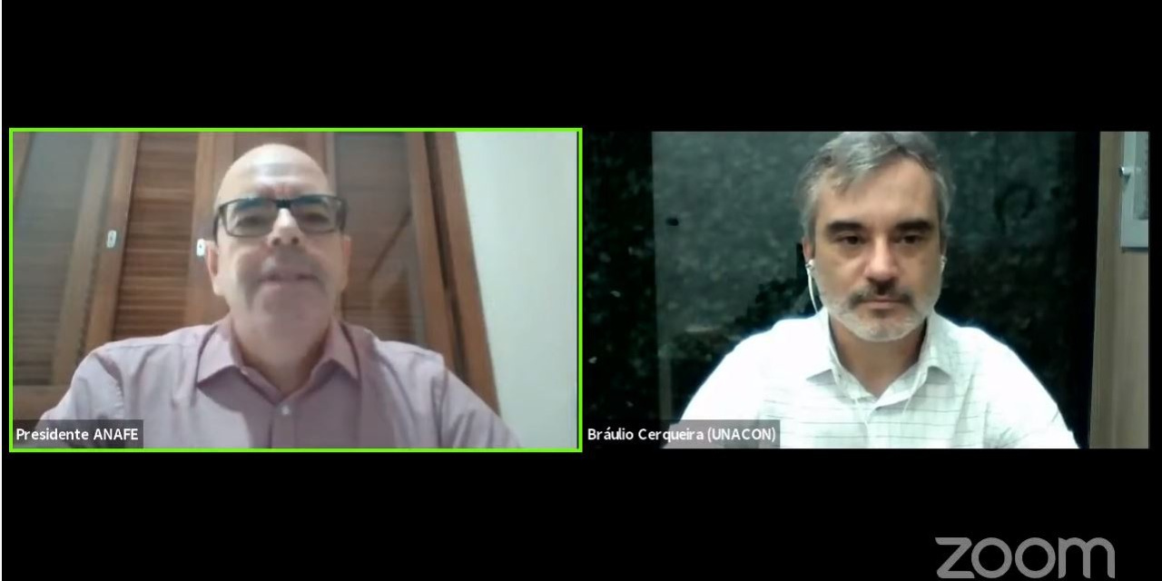 Com o tema “Os desdobramentos da PEC Emergencial e sua interface com a Reforma Administrativa: riscos de regressão”, o Presidente da ANAFE, Lademir Rocha, e o Presidente da Unacon Sindical, Bráulio Cerqueira, debateram, nesta quarta-feira (17), a temática. Durante o evento virtual, os participantes apresentaram um breve histórico de atuação e apontaram sugestões à Reforma Administrativa.