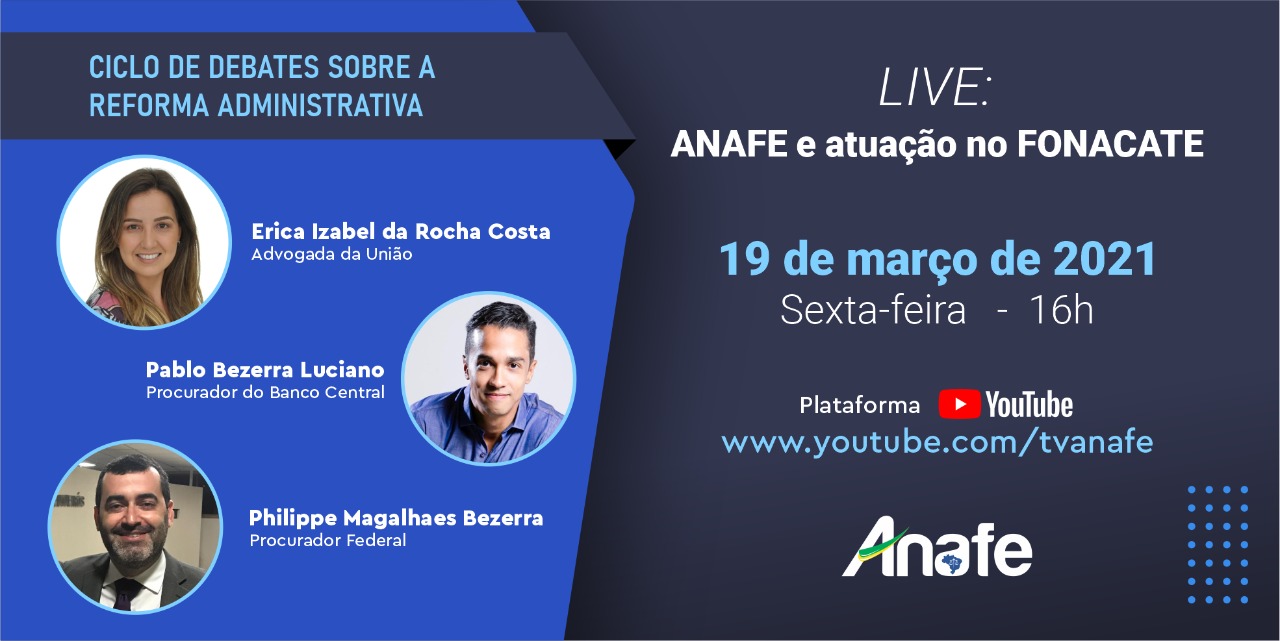 Os convidados serão os associados à ANAFE: a Advogada da União Erica Izabel da Rocha Costa, o Procurador do Banco Central Pablo Bezerra Luciano e o Procurador Federal Philippe Magalhaes Bezerra.